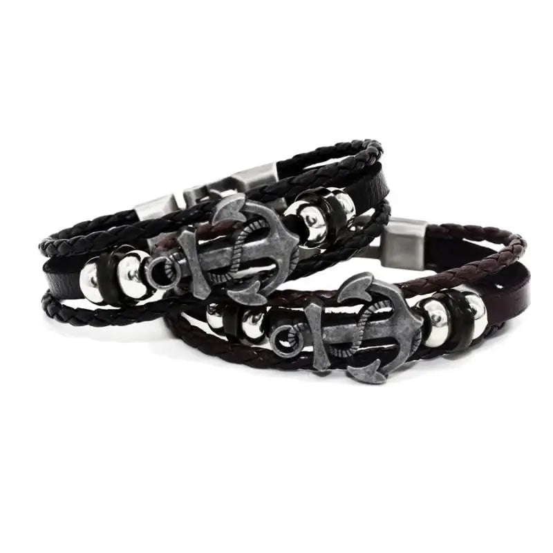 Trendy Multilayer Leather Braided Bracelets Anchor Viking Mens Bracelet