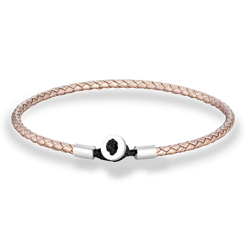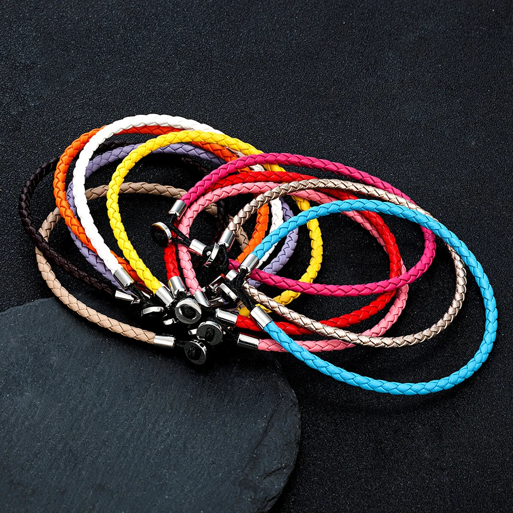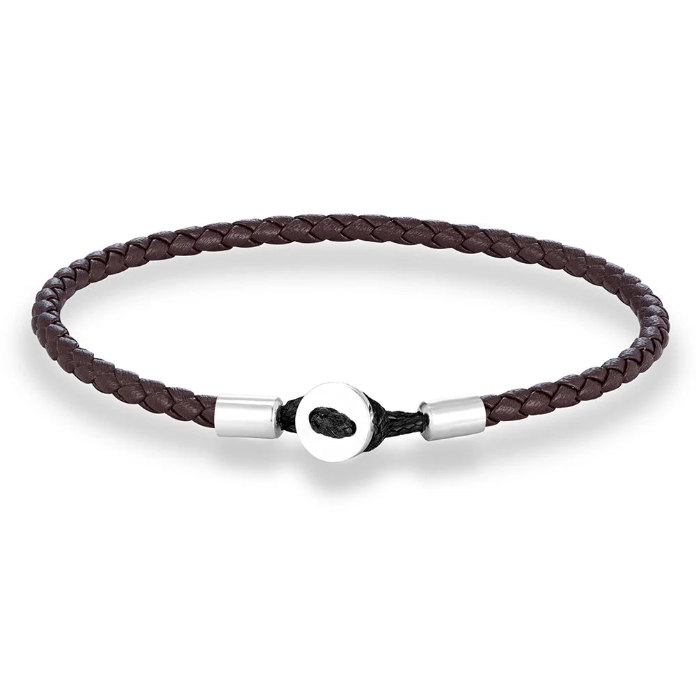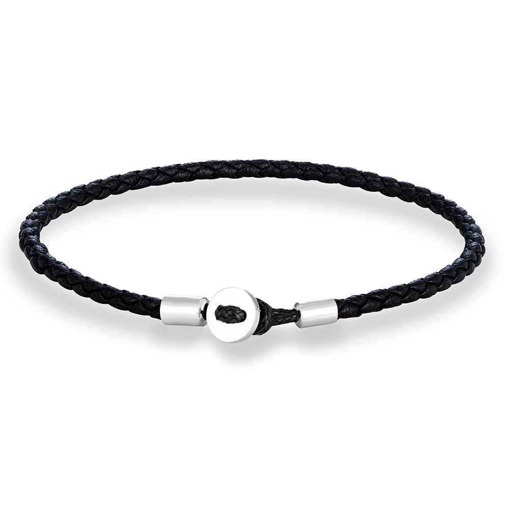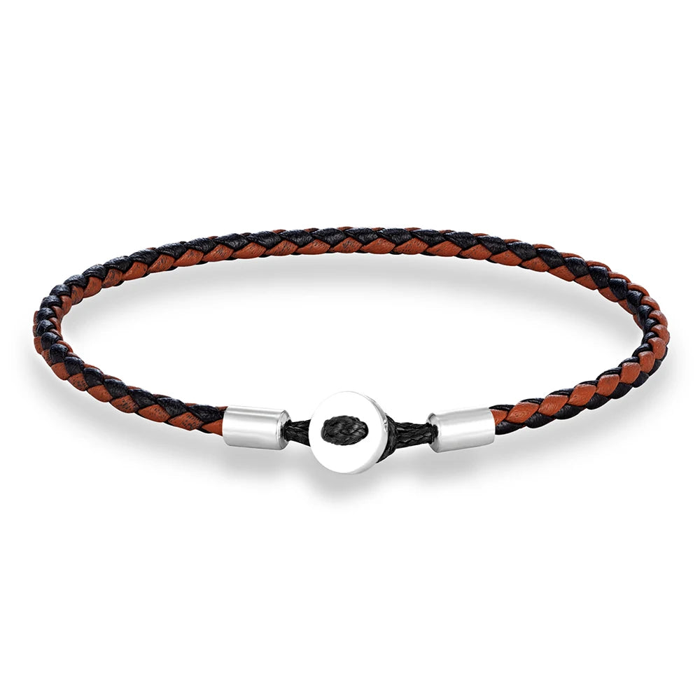 Unisex Simple Style Stainless Steel Button Braided Leather Bracelet