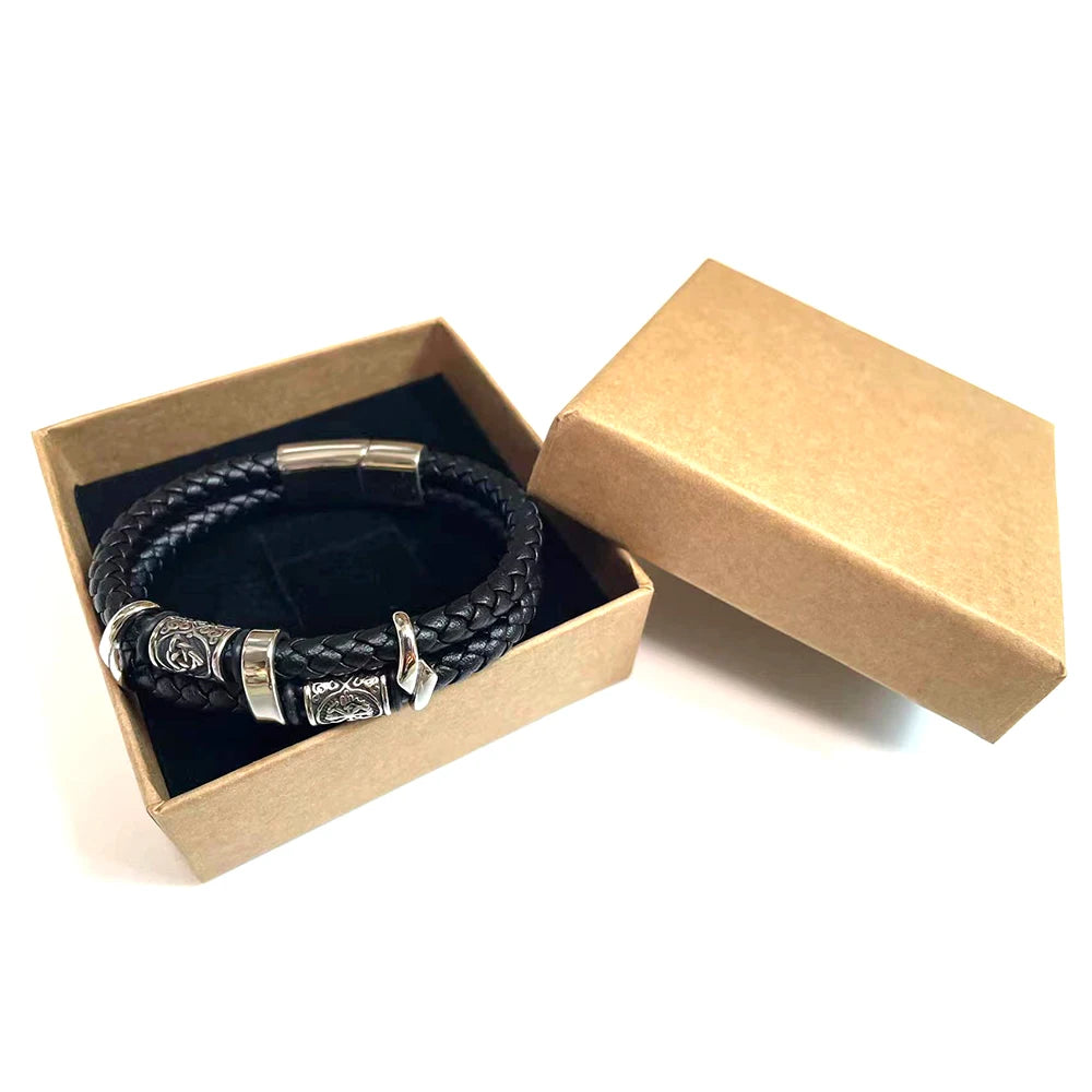 Viking Natural Wooden Jewelry Boxes Retro PU Leather Bags