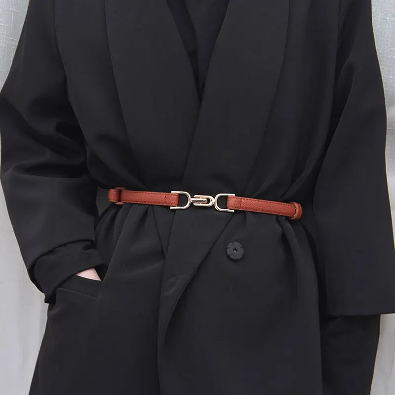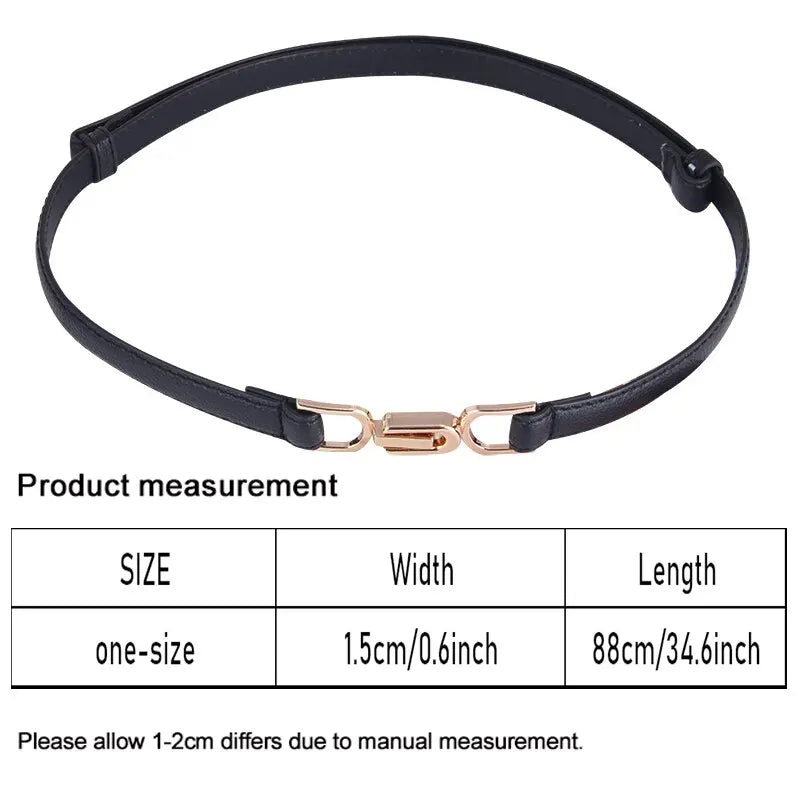 Womens Leather Skinny Belt Gold Buckle