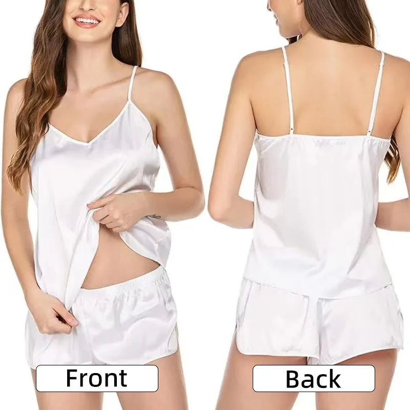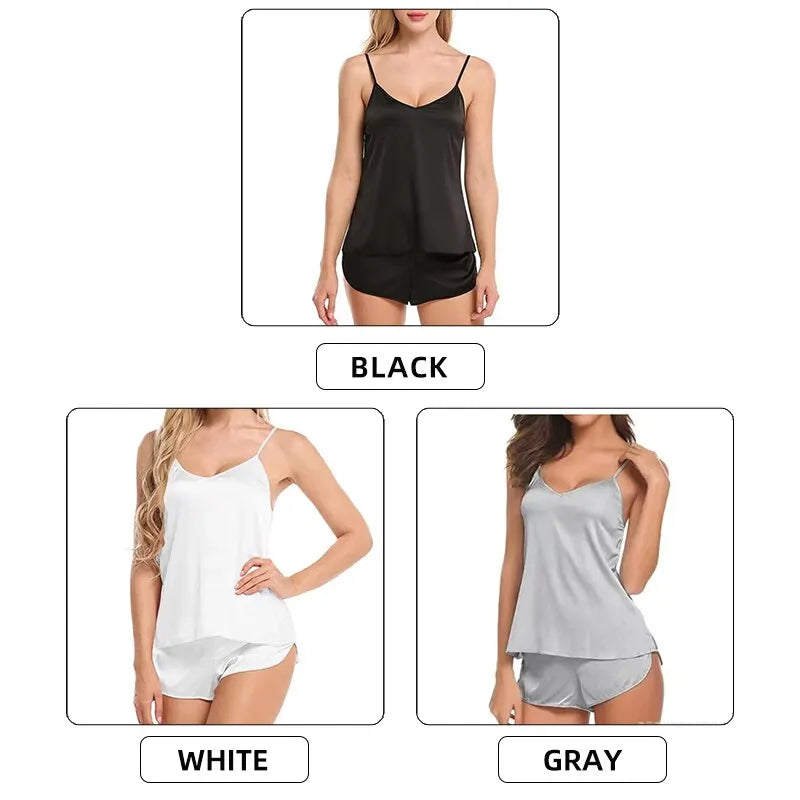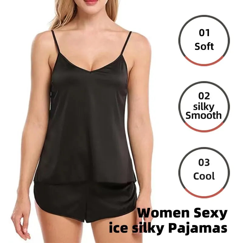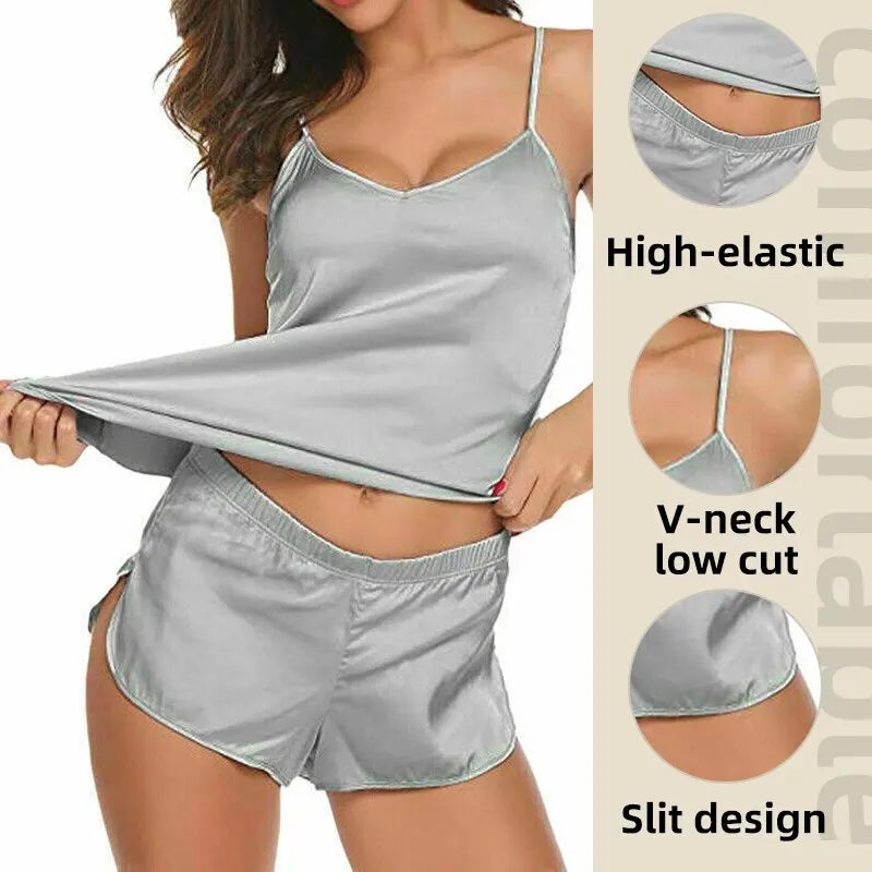 Womens Sexy Ice Silky Pajamas Nightwear Sleepwear Camisole And Shorts